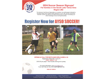 South Lake Tahoe AYSO 2024 Fall Soccer is OPEN.